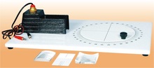 A ventilated lamp house having an open front with extended sides finned externally for heat dissipation and vertical internal grooves to accommodate a slit plate and cylindrical lens. It has a light source comprising 12 volts, 21 watts lamps in a holder with one meter of twin flex having banana plugs. Complete with metal plate having single and triple slits and whitened on one side and other side black matt. Operates on 12 volts power supply. Without lens.