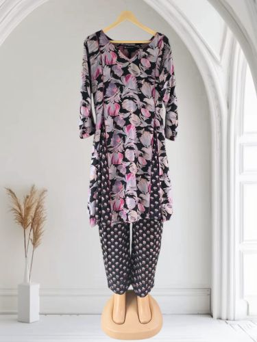 Rayon Printed Kurti Pant Set, Color : Multicolor XL