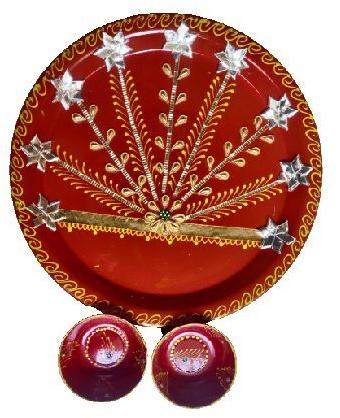 Multipack: 1 Metal Diwali Hand Painted Pooja Aarti Thali Set
