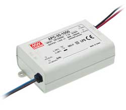 APC Series : Rectangular Plastic Case  Features:  Constant Current Type Universal AC input / full range Low Cost High Reliability Suitable for LED Lighting and Moving Sign Applications Fully isolated plastic case with IP 42 level Protections: Short Circuit / Over voltage Wattage: 8 Watts, 12W, 16W,25W and 35W Current Rating: 250mA, 350mA, 500mA, 700mA, 1050mA DC Input Rating: Universal 90 ~ 264 VAC / 127 ~ 370 VDC Design: IP 30 Models