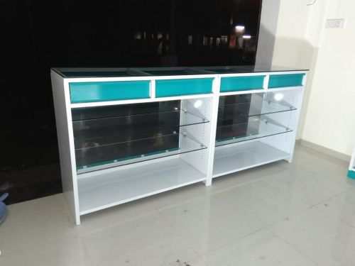 All CRC MS powder coated Heavy duty with adjustable glass selfs with 2 cash drawers and glass display
