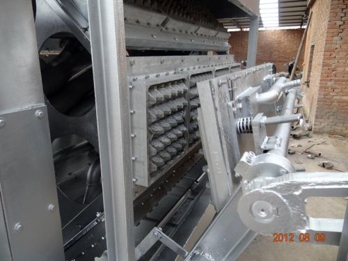 molding equipment total has eight molding templates, one transfer template, every molding template can be loaded four thirty-egg tray mold, total thirty-two sets. Molding efficiency is 13-15 cyclemin, with vacuum automatic drainage system, mold cleaning equipment and automatic heating system