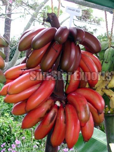 Health Benefits Of Red Banana Red banana as the name suggests are bananas which have a distinctive redish violet colour, as compared to the regular yellow bananas. Red bananas are a great source of Beta-carotene. It is a good source of vitamin C. It has been found that red bananas can help improve your hemoglobin count and improve the quality of your blood thanks to the various vitamins and anti-oxidants present in this fruit