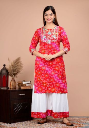 Gamyam's Rayon Bandhani Print Sharara Set with Plain Dupatta