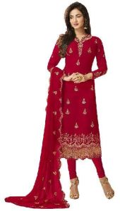 Red Color Semi Stitched Party Wear Salwar Kameez. This Product Includes High Quality Georgette Top With Inner Attached Having Resham, Diamond Stone And Lace Embroidery Work. Santoon Bottom, Georgette Dupatta With Resham, Stone And Lace Embroidery Work. It Can Be Customized Upto Chest 58 Inch And Length 51 Inch. You Have To Stitch It According To Your Size. It is Suitable For Casual, Party, Occasion, Festive Wear Etc