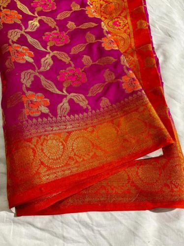 Unstitched Red Dola Silk Saree, Pattern : Printed