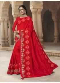 Red Georgette Embroidered Wedding Saree, Saree Length : 5.50 Mtr