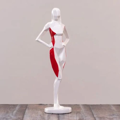 An absolutely breathtaking piece featuring an angular female humanoid figurine with streaks of striking red, this showpiece brings glamour and high fashion into any space it adorns! It will instantly elevate the entire feel of the space and give your rooms a fashionable upgrade!