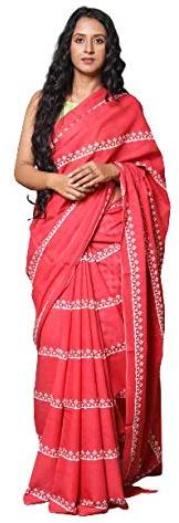 Red With Border Design Authentic Design Pure Cotton Mulmul Printed Sarees?