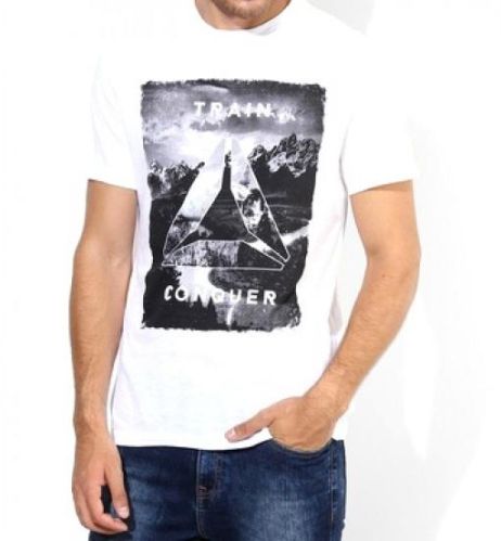 Cotton Slub fabrication gives this graphic tee a lifestyle look perfect for everyday wear.TRAINConquer Graphic photoprint.GREATNESS IS EARNED hidden message for inspiration.