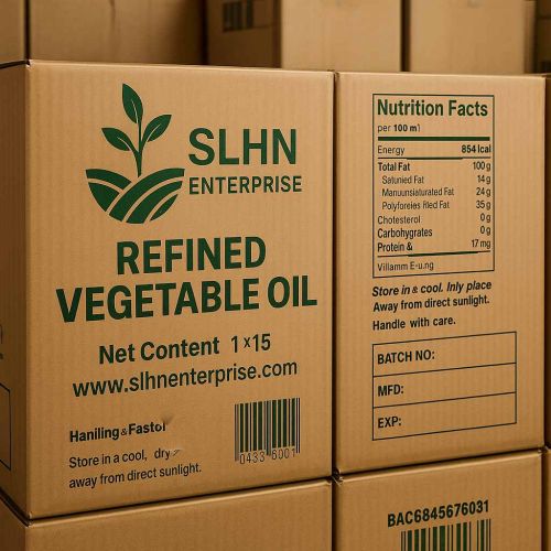 At SLHN Enterprise, we are a trusted refined vegetable oil supplier and exporter, offering customized bulk and retail packaging solutions for households, restaurants, food processors, and industrial sectors. Our oils are produced under ISO, HACCP, Halal, and SGS-certified facilities, ensuring global compliance and consistent quality.