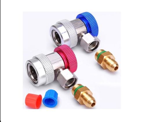 We are offering refrigeration quick coupler with a connector, part number description qc-h red colour :high pressure,connector flare 14" female with adapter. qc-l blue colour :high pressure,connector flare 14" female with adapter.