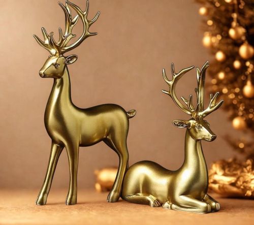 Contact SupplierThese elegant golden reindeer figurines are a timeless addition to any home décor, bringing a touch of sophistication and festive charm to your space. Crafted with fine detailing, the set features two reindeers—one standing gracefully with tall antlers and the other resting in a calm, poised posture. Their sleek design and smooth metallic golden finish create a luxurious appeal, making them a perfect centerpiece for living rooms, side tables, mantels, or festive displays. Symbolizing grace, strength, and prosperity, these reindeer statues not only enhance the aesthetics of your home but also carry a meaningful presence, especially during festive occasions like Christmas, Diwali, or weddings. Versatile in use, they can elevate everyday décor with a modern, classy touch or serve as a thoughtful gift for loved ones. With their glossy sheen and artistic design, these reindeer figurines are sure to add warmth, beauty, and elegance to any setting.