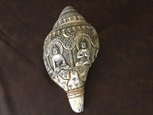 Conch shell are natural with great Sea sound. 9 x 13 inches dimension. Mostly handcarving of Buddha & buddha Deities gods and goddess including hindu god- Ganesh.
