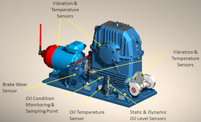 The Renold SmartGearbox incorporates a range of condition monitoring technologies designed to enhance reliability and performance. The technologies available include: Oil condition monitoring system (OCMS) Vibration sensors Temperature sensors Dynamic and static oil sensors Brake wear sensors Continuously monitoring the condition of your gearbox allows for early detection of any potential issues, enabling corrective action to be taken. Benefits can include: minimising downtime, increasing production and reducing maintenance costs.