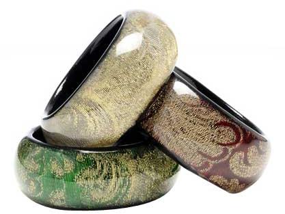 We are recognized as one of the supreme Resin Bangles Exporters from India. Various national as well as international clients are placing repeated orders for the Designer Resin Bangles as no alternative is available in terms of designs and patterns. Additionally, we also provide customized Resin Bangles meeting the tastes and preferences of the clients. Features :