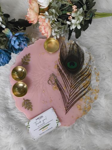 Contact SupplierBring elegance and devotion to your spiritual space with this beautifully handcrafted 10-inch Resin Pooja Platter. Designed in a soothing baby pink colour, this platter is adorned with a delicate peacock feather design, symbolizing peace, purity, and positivity.Size: 10 inches, perfect for home mandir, festive rituals, or gifting.