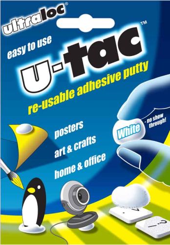 We are offering u-tac re-usable adhesive is an advanced formulated sticky putty product for hanging pictures, temporary fixings and cleaning up loose particles. Made from white coloured putty for less show through on light coloured surfaces.