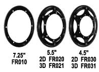 Reverse mount ring gears (RM-RG) mount onto the clutch cover with the clutch bolts. They are used with a reverse starter mount bellhousing instead of a flexplate. The RM-RG's for the 5.5" and 4.5" clutches have a scalloped adapter that reduces static weight and greatly reduces
