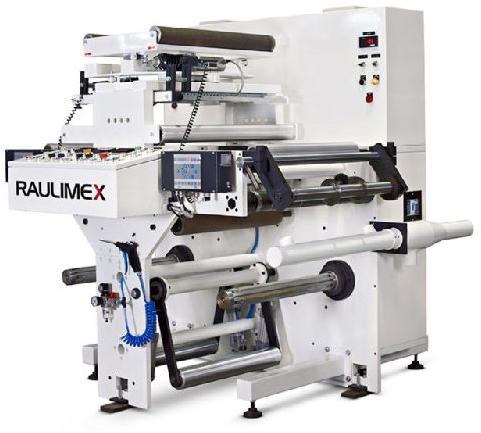 Working speed up to 250 m / min.Web width up to 600 mm.Unwind / Rewind roll diameter up to 600 mm.Dual edge guide.Independent motors for unwind, in-feed and rewind.Splicing table – optional. Cantilever 3” pneumatic shafts on unwind / rewind for quick changeover.Pneumatically operated lay-on rollers on both unwind and rewind. This is a three motor drive machine with a dual edge guide and capable of operating both in the forward and reverse directions.