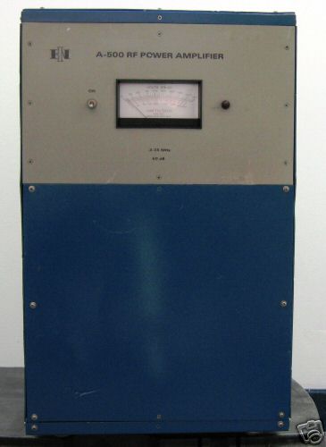 Contact SupplierWe are offering rf amplifiers, amplifiers, used amplifiers, test equipment etc.the a500 rf power amplifier covers the frequency range of 300khz to 35mhz with linear power output of 500 watts. Primarily designed for use in hf transmitters, nuclear accelerators, nmr systems, plasma equipment and rfiemi applications. This extraordinarily compact and efficient rf source will operate reliably under the most extreme environmental conditions without damage or failure. All solid state flat 0.3 to 35mhz no bandswitching works into any load impedance failsafe easy maintenance