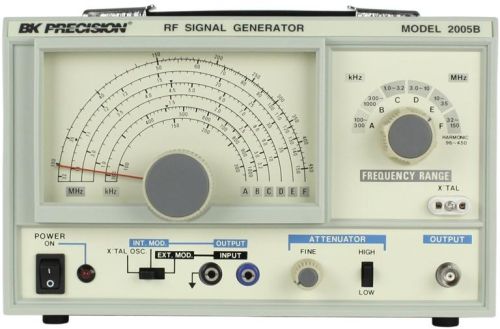 BK Precision 2005B RF Generator to 450 MHz 100 kHz to 150 MHz on six bands Output to 450 MHz on harmonics AM modulation, internal or external Step and variable atten