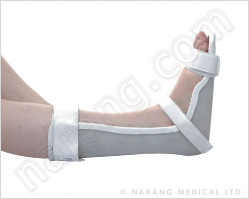 Size:Â S, M, L Feature: Well-padded unbreakable, washable and reusable Light weight splint Flat base preventing lateral dropping of foot. Application : Used in pre-cast conditions To prevent lateral dropping of foot during sleep De-rotation splint to prevent hip-ratation following surgical procedures.