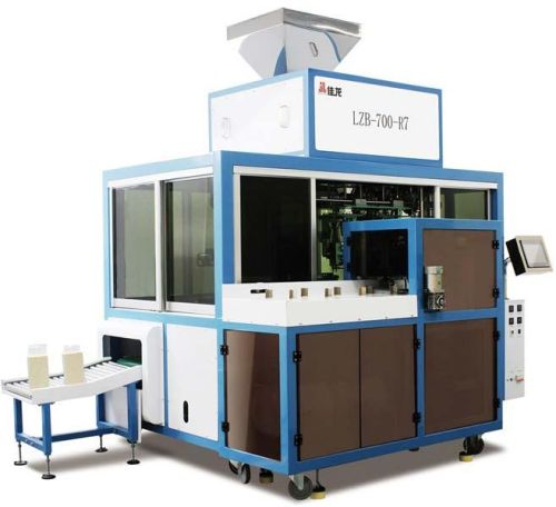We offer rice automatic vacuum packaging machine. Lzb-700-r7 automatic vacuum packaging machine the fastest brick type vacuum packaging machine auto finished: auto giving bag-weighing-filling-cubic shaping-vacuum- heat sealing-discharge-conveying model lzb-700-r7 weighing extent(kg) 0.5~2.5 weighing speed(bagsh) 660-720 scale interval(g) 2 accuracy grade x(0.5) power consumption 4n ac380v 50hz 3.5kw air consumption 0.4~0.6 mpa 5m3h dimension(mm)