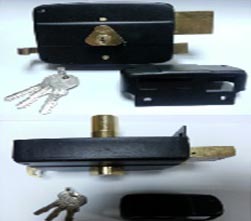 We are offering rim lock, dead : made by iron& bronze alloy latch bolt : brass size : 60 mm mechanical type cylinder type : 3 key , made by brass , size 60 mm handle knob : brass body color : black ( powder coating ) front cover : black ( powder coating