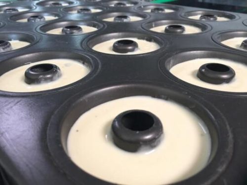 This ring cake oil sprayer & depositor 2 in 1 machine is special designed for making cakes with donut shape. Firstly, the oil sprayer spraying oil into the trays evenly, then the trays move to the depositor for ring-shaped dough filling.