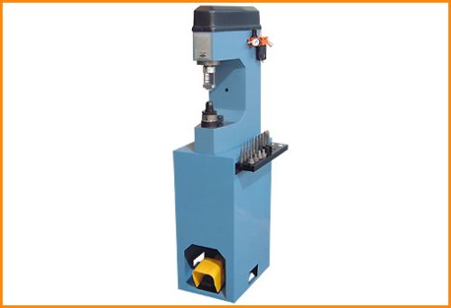 The hydro-pneumatic riveting machine allows to rivet and derivet the brake linings on every type of brake shoe. The heavy duty steel structure gives excellent qualities of strenght and rigidity at the machine, while the combined hydraulic and pneumatic acting system assures an high working force using a low quantity of compressed air which is treated by a filter-lubricator group complete of pressure regulator and an easy reading manometer.