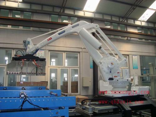 Robot Palletizing Machine Multi-functional Robot Palletizing System is researched and developed by SANNONG. This technology adopts the fastest four-axis multi-functional industrial robot in the world, and significantly shortens the time of every production period, thus increases the efficiency. The whole system include bagging system, Bag conveyor and palletized, empty pallet dispensers, Pneumatic bag clamp ,Robot palletize, full pallet staging and takeaway etc. It is widely applicable for fertilizer, grain and construction industry etc.