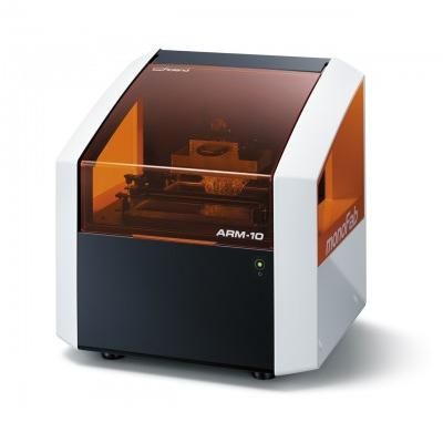 MonoFab ARM-10 Desktop 3D Printer Digital Light Processing (DLP) layered projection system produces semi-transparent models for concept and form testing Fully enclosed cabinet for safety Easy to use - controlled with a single button Build area: 5.11" W x 2.75" D x 2.75" H