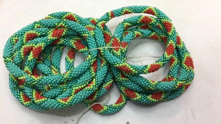 100% Glass Beads, Green, black, Turquorise & white color combination snake skin patterns handknitted roll bracelets for summer fashion.