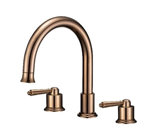 Solid Brass Polished Chrome, Rose Gold surface finishing Ceramic Cartridge three holes Deck installation type Package: Each set of Faucet is Packaged in a single cloth bag. 4 pcs in an outer carton MOQ 200pcs Country of Origin: Taiwan