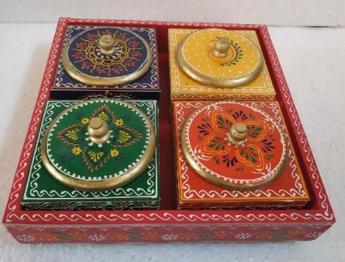 Dry Fruit Rotating tray set with steel bowl in fine amboss painting