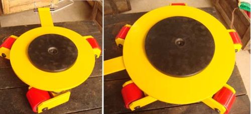 Rotating moving dolly normally used on moving heavy loads in confined and narrow spaces.