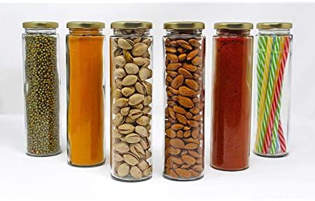 TRO Round Hard 350ml Bamboo Glass Jar, For Food Storage, Cap Material : Metal
