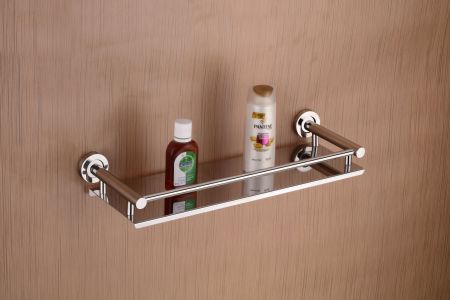 Rectangular Chrome Plated Stainless Steel Round Pipe Single Shelf, For Bathroom Use, Size : 7 X 15 X 5 Inch