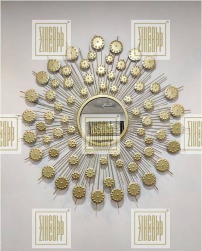 Golden Decorative Mirror For home Round Shape with Golden Powder Coated.