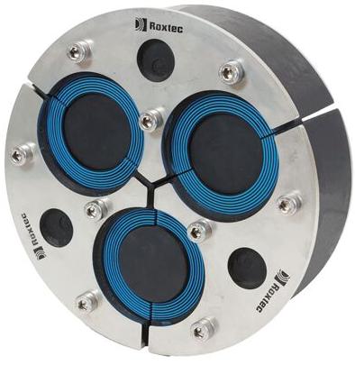 The Roxtec H UG is a three-part seal for easy installation. The transit has a +5mm tolerance towards the aperture and an indicator showing when a compressed seal is achieved.