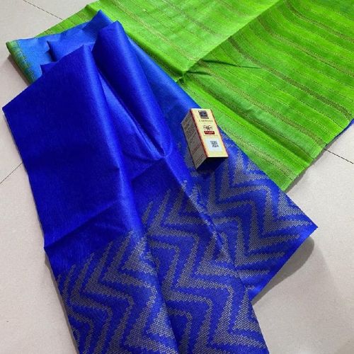 Royal Blue Staple Semi Silk Saree, Width : 5.5 Meter
