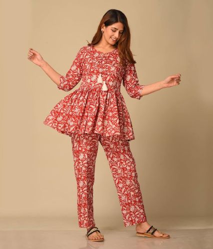 Contact SupplierFor a fully-functional and stylish outfit for a summer escape, a timeless red and white combination will be your go-to choice. This red summer outfit is embellished in white decorative patterns, making it an ideal ensemble for a fun-filled festival. In bright hues and floral prints, channel the easy grace of a post-summer downpour. The two-piece outfit includes a stylish neckline with tassels, three-quarter sleeves, palazzo pants that are light and airy, and it is sure to make you look great.