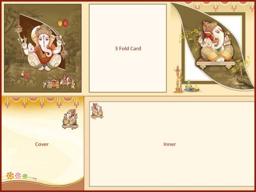 Royal vigneshwara wedding card that we give to our clients come in 8*8 sizes and come in uv coating with 3 folds. The royal vigneshwara wedding card is printed in art board with art paper cover and inner.