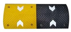 There are Two Pieces in 1 Meter of Speed Breakers. One is in Yellow Colour & the other is in Black Colour. There are 2 Reflectors in One Piece i.e in 1 Meter we can find 4 Reflectors in the Shape of Arrow as Shown Below. There are 4 Screwing Points on one Piece of Speed Breaker to Install the Speed Breaker on Roads. On one Meter of Speed Breaker we can find 8 Screwing Points for Installation. There are zigzag lines on Speed Breaker which helps to drain out the water on Roads when rain falls and does not face the colour in any weather conditions.