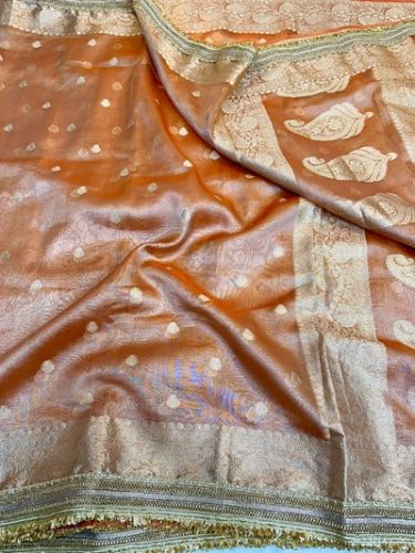 Rust Orange Tissue Silk Lace Attached Banarasi Saree