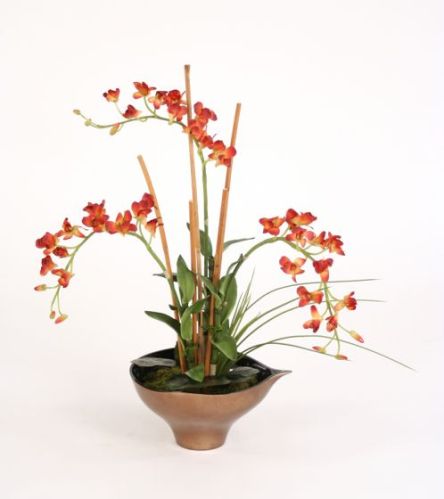 7544# - Rust Orchids, Arrorog and Tropical Foliage in Bronze Leaf Bowl Container Material Man-Made Material Dimensions Height" x Width" x Depth" 24 x 23 x 18 Dominant Color Rust Dominant Color Family Oranges Shipping Weight 7 Ships