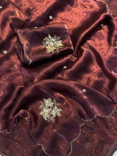 Looking for Rust Shimmery Tissue Handwork Saree?