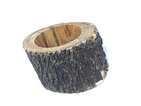 This exotic piece of decor can be used as a planter or to store small items. Due to the fact that these are custom made the actual size may vary slightly depending on bark used. Around 8' inches wide and 5' inches tall with interior hole being 4' inches and depth being 4'.Details : Custom tree bark planter Unique one of a kind item Each bark is different