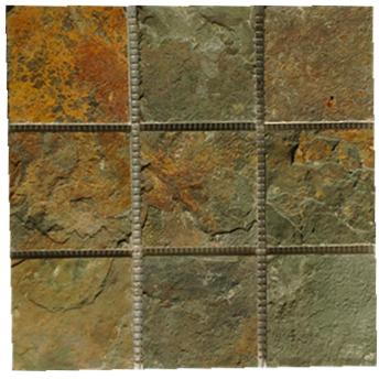 Length(mm):305 Width(mm):305 Colour:rusty Material:Natural Stone Suitable For:Floors,Walls A mosaic is a piece of art or image made from the assembling of small pieces of colored glass, stone, or other materials. It is often used in decorative art or as interior decoration. Most mosaics are made of small, flat, roughly square, pieces of stone or glass of different colors, known as tesserae. Some, especially floor mosaics, are made of small rounded pieces of stone, and called "pebble mosaics"
